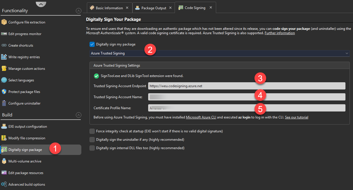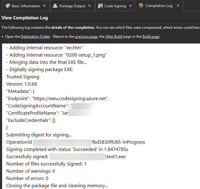 Using Azure Trusted Signing in Paquet Builder ensures a streamlined and automated code signing process directly within your installer build workflow.